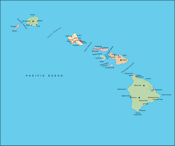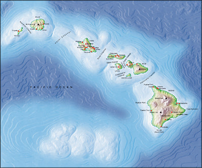 Photoshop JPEG Relief map and Illustrator EPS vector map Hawaiian Islands