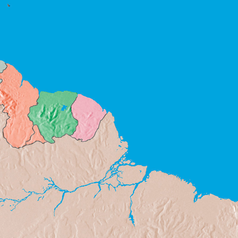 Mountain High Relief Map package of Photoshop JPEG and Illustrator EPS map of South America continent is a high quality fully editable geopolitical relief and vector map in Bipolar oblique conic conformal projection and is supplied with a comprehensive set of layers of editable features and names. JPEG Relief maps and EPS Vector maps can be easily and quickly loaded into desktop design, publishing, presentation apps for the highest quality geographical representation. At 300 dpi this maps measures 7.22 x 9.47 inches and a pixel size of 2166 x 2841. Map resolution is 2500 meters per pixel.