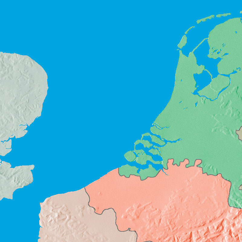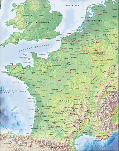 Photoshop JPEG Relief map and Illustrator EPS vector map France, Benelux, Switzerland