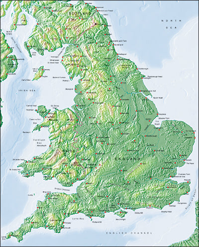 Mountain High Relief Map package of Photoshop JPEG and Illustrator EPS map of England is a high quality fully editable geopolitical relief and vector map in Conical projection and is supplied with a comprehensive set of layers of editable features and names. JPEG Relief maps and EPS Vector maps can be easily and quickly loaded into desktop design, publishing, presentation apps for the highest quality geographical representation. At 300 dpi this maps measures 6.45 x 8 inches and a pixel size of 1936 x 2400. Map resolution is 300 meters per pixel.