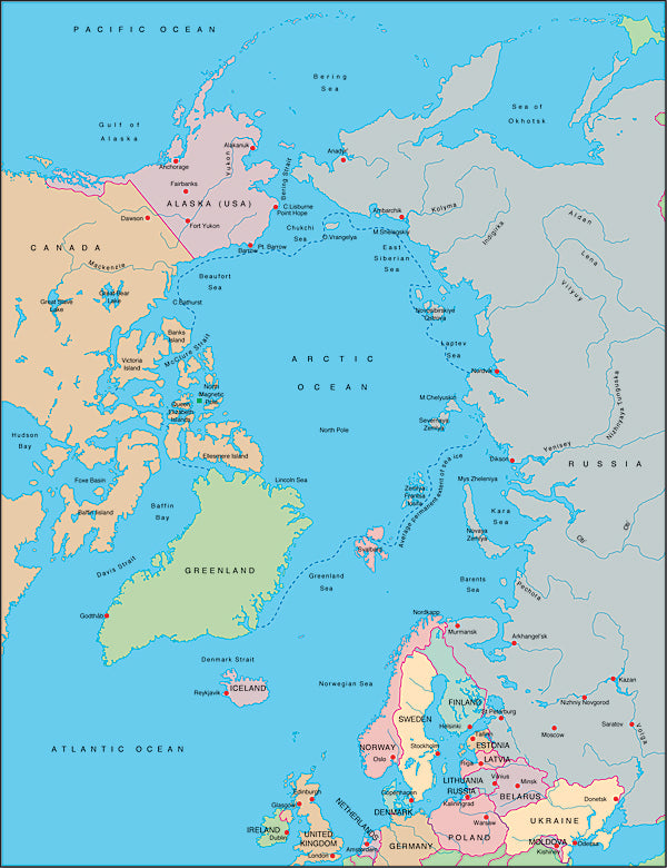 Mountain High Relief Map package of Photoshop JPEG and Illustrator EPS map of Arctic Ocean centered at 0¬° is a high quality fully editable geopolitical relief and vector map in Zenithal equidistant projection and is supplied with a comprehensive set of layers of editable features and names. JPEG Relief maps and EPS Vector maps can be easily and quickly loaded into desktop design, publishing, presentation apps for the highest quality geographical representation. At 300 dpi this maps measures 6.28 x 7.86 inches and a pixel size of 1885 x 2357. Map resolution is 3500 meters per pixel.